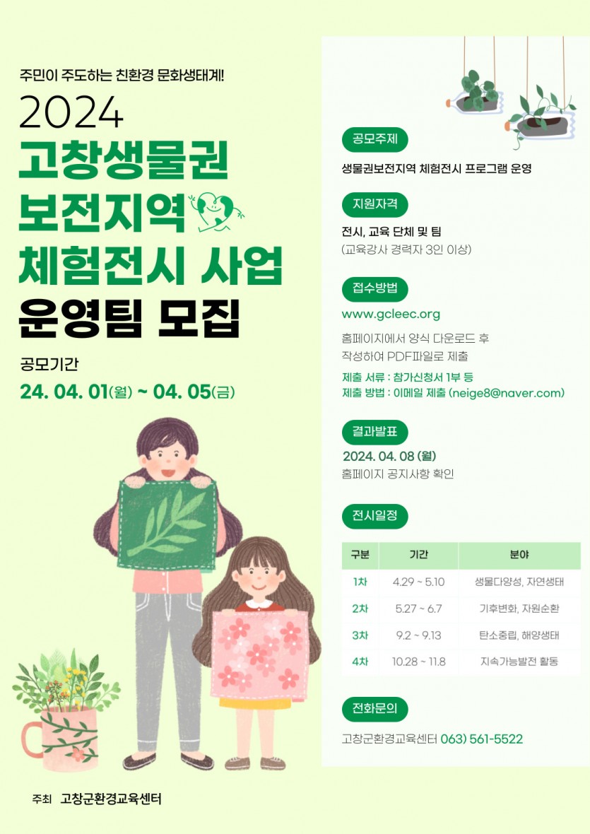 <2024년 고창군환경교육센터 생물권보전지역 체험전시 사업> 운영팀 모집공고
